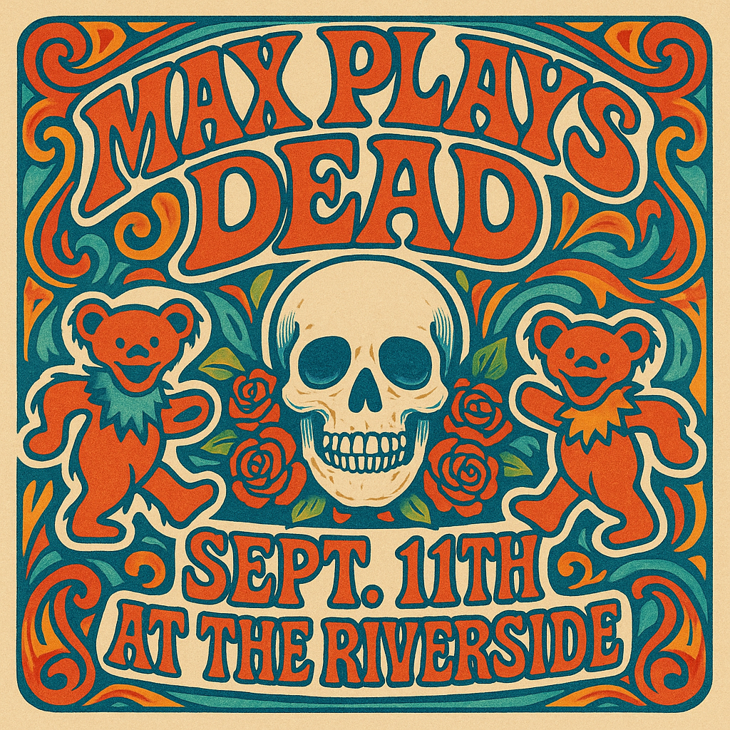Please join us this Thursday for the Rock The Dead’s new home on Boulder Creek’s best patio with Max Plays Dead.